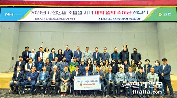 표선농협(조합장 김용우)은 지난달 27일 NH농협은행 제주수련원에서 올해 대학에 입학한 조합원 자녀 43명에게 1인당 100만원씩 총 4300만원의 대학입학 축하금을 전달했다. 표선농협은 조합원 복지와 자녀 교육비 부담을 덜어주기 위해 대학 신입생에게 축하금을 꾸준히 지원해오고 있다.