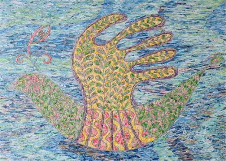 강인경 작 '하늘을 걷는 자', 자개색지화, 50×70cm