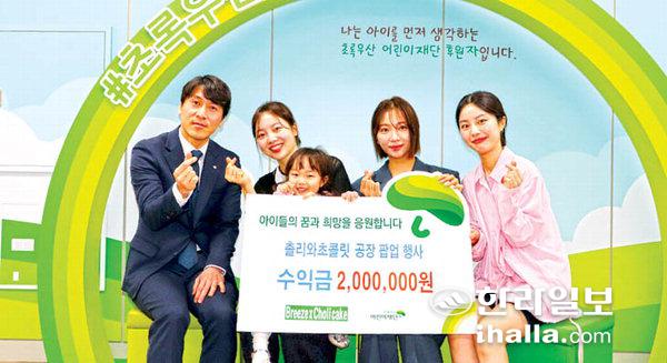 Breeze(송수미 외 3명)와 촐리케이크(대표 채희향)는 지난 10일 초록우산어린이재단 제주지역본부를 방문해 어린이날 행사를 통해 모금된 수익금 200만원을 초록우산 어린이재단 제주지역본부(본부장 변정근)에 기부했다. 이번 '촐리와 초콜릿 공장' 행사는 어린이날을 맞아 매장을 찾은 고객을 대상으로 진행했다.