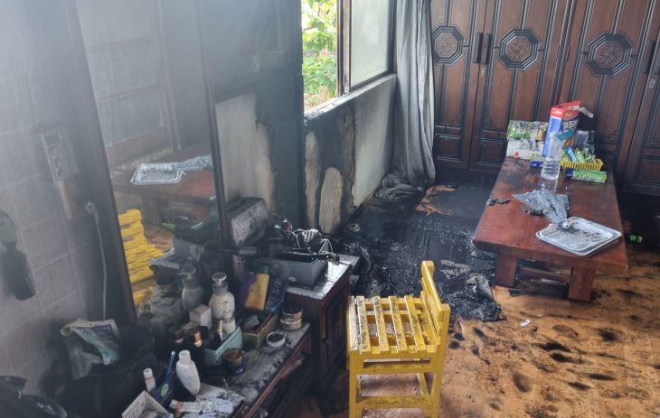 지난 16일 화재가 발생한 제주시 애월읍 하귀리의 한 단독주택 내부의 모습. 제주서부소방서 제공