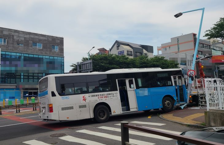 13일 제주시 아라일동에서 발생한 시내버스 교통사고 현장. 독자 제공