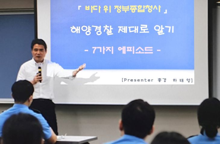 14일 여수 해양경찰교육원에서 진행된 '바다 위 정부종합청사, 해양경찰' 특강. 제주해경청 제공