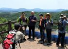 탐방객들이 거문오름 해설사 부스에서 팝업북을 이용한 \'유네스코 3관왕 꾸미기\' 프로그램에 참여하고 있다. 이상국기자