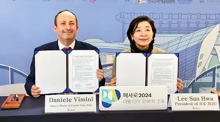 제주국제컨벤션센터(이하 ICC JEJU, 대표이사 이선화)는 지난 14일 이탈리아 페사로시와 문화·관광 연계 MICE 발전을 위한 상호협약을 체결했다.