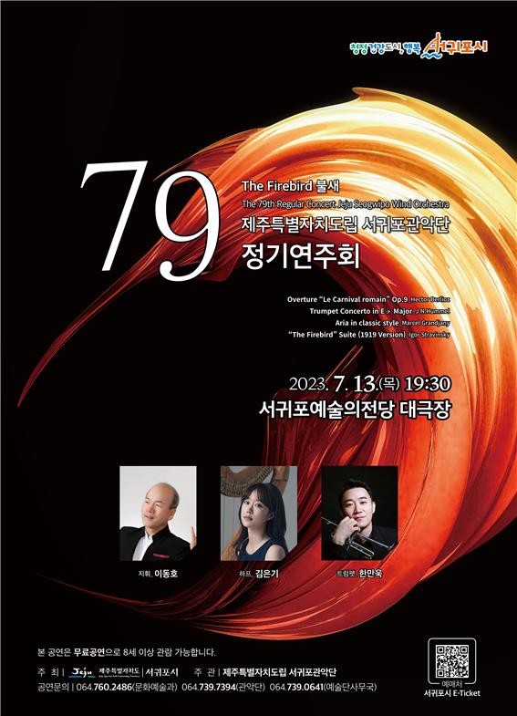 [한라일보] 제주특별자치도립 서귀포관악단이 스트라빈스키의 '불새'(1919년 버전)모음곡을 선보인다. 오는 7월 13일 오후 7시30분 서귀포예술의전당 대극장에서 열리는 제79회 정기연주회를 통해서다.
