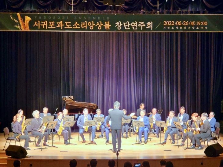 서귀포시 평생학습관 색소폰 동아리 20여 명이 모여 지난해 1월 창단한 서귀포파도소리앙상블은 한국음악협회 서귀포시지부 김세철 지부장(도립 서귀포관악단원)의 지도로 실력을 배양하며 찾아가는 음악회 등 다양한 연주 활동을 벌이고 있다.