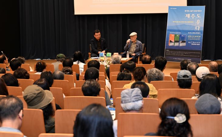 지난 8일 제주문학관 대강당에서 열린 현기영 소설가 초청 북토크.