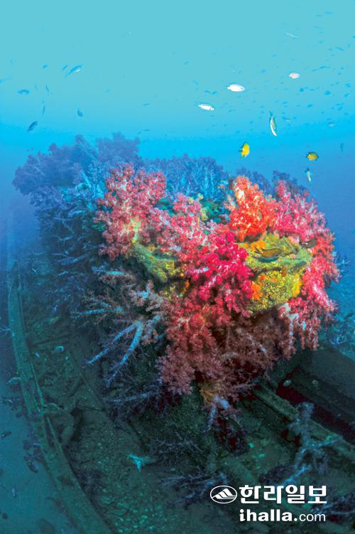 [한라일보] "무엇보다 빨강, 노랑, 보랏빛 산호에서 눈을 뗄 수 없었습니다. 지상 어느 곳보다도 화려하고 아름다운 꽃밭 위를 날아다니는 기분이었죠. 해외에서만 볼 수 있을 거로 생각했던 산호를 제주에서 볼 수 있다는 것이 놀라웠습니다. 알고 보니 제주 문섬은 세계 최대 연산호 군락지로 유명한 곳이었어요. 이 경험은 제 인생을 바꿨습니다." 박승환 수중사진작가가 책 '조금은 사소하고 쓸데 많은 제주 산호에 관한 거의 모든 것'에서 한 말이다.