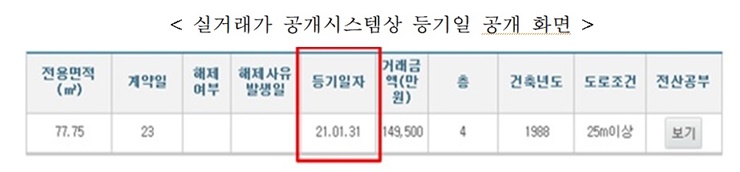 실거래가 공개시스템에 아파트 등기일이 추가 공개되면 부동산 거래 허위신고 사전방지 효과와 함께 계약해제 신고 불이행, 등기신청 지연 등 위법사례도 감소할 것으로 국토부는 전망했다.
