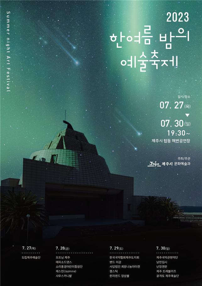 제주시는 이달 27일부터 30일까지 4일간 탑동 해변공연장에서 '2023 한여름 밤의 예술축제'를 연다.