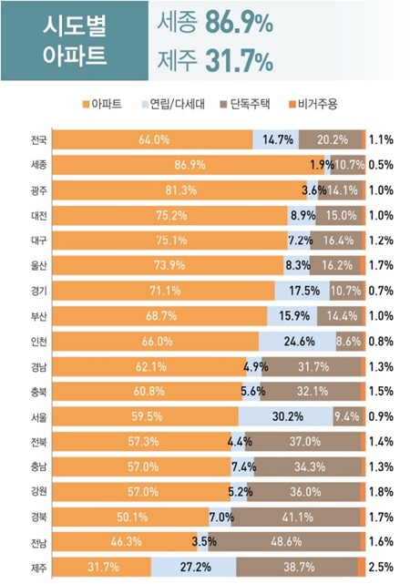 2022년 시도별 주택 종류별 구성비. 통계청