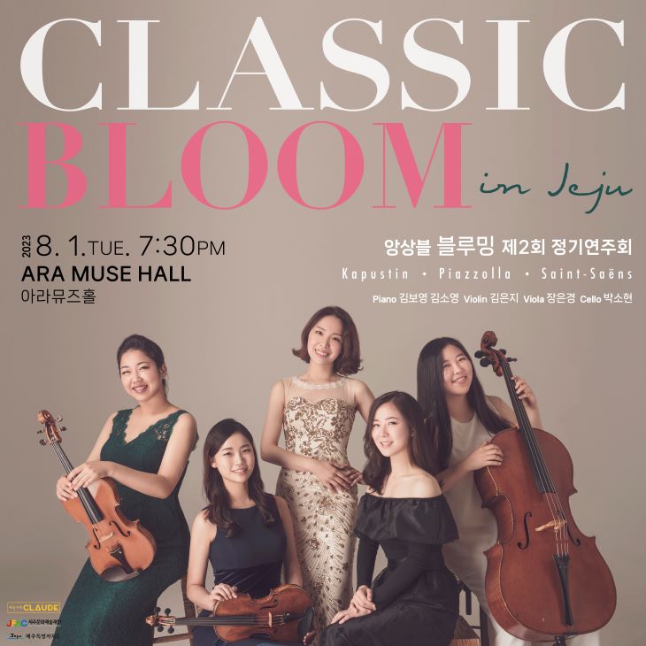 미국 인디애나주립대학 음대 동문인 바이올리니스트 김은지, 비올리스트 장은경, 첼리스트 박소현, 피아니스트 김보영·김소영이 지난 2019년 결성한 앙상블 블루밍은 두 번째 정기연주회 'CLASSIC BLOOM in Jeju'로 관객과 만난다.