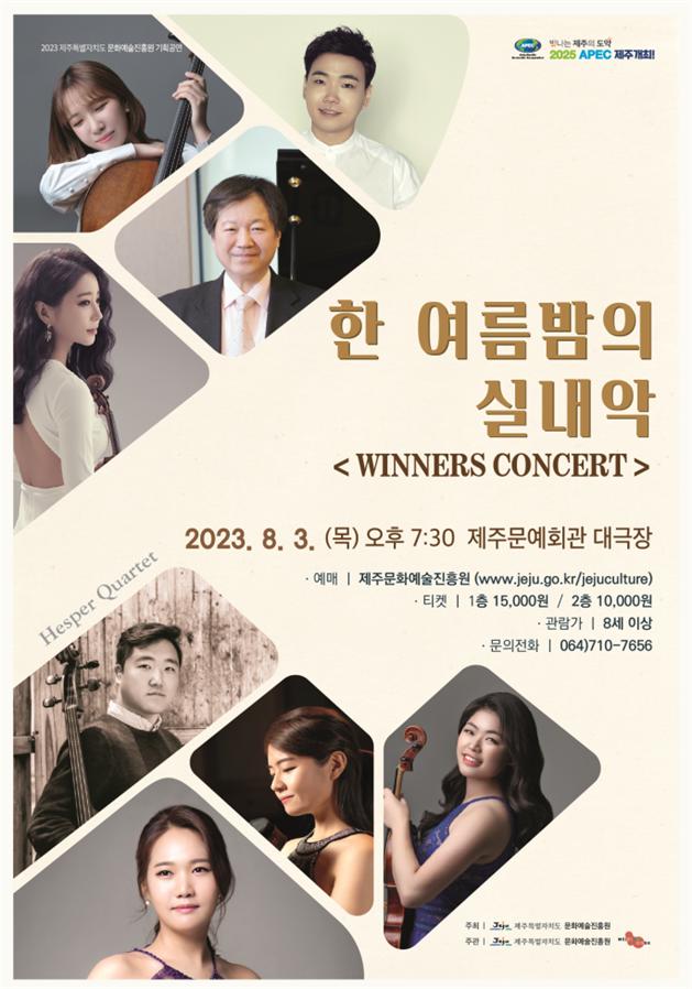 3일 '한여름밤의 실내악, 위너스 콘서트'에선 국내외 유수의 콩쿠르에 입상하며 두각을 나타내는 젊은 아티스트들의 현악사중주, 피아노오중주 및 삼중주 등 다양한 편성의 무대를 만끽할 수 있다. 특히 제주출신으로 미국에서 왕성한 활동을 펼치는 비올리스트 윤소희가 출연한다. 윤소희는 지난해 미국 워싱턴국제콩쿠르에서 비올라 부문 우승을 차지했다.