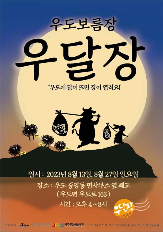 이달 13일과 27일 우도 북카페(우도 중앙동 면사무소 옆 폐교)에서 열리는 '우달장'(오후 4~8시)은 지역 주민이 직접 셀러로 참여하며, 중고마켓·어린이 마켓·셀러 코너와 함께 다양한 문화행사가 진행된다.