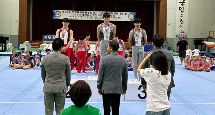 [한라일보] 제주국제대 강민국(4)이 2023 전국대학·일반체조선수권대회 남자대학부 도마 1위에 올랐다. 제주국제대 김효빈(3)도 같은 종목에서 3위를 기록했다.