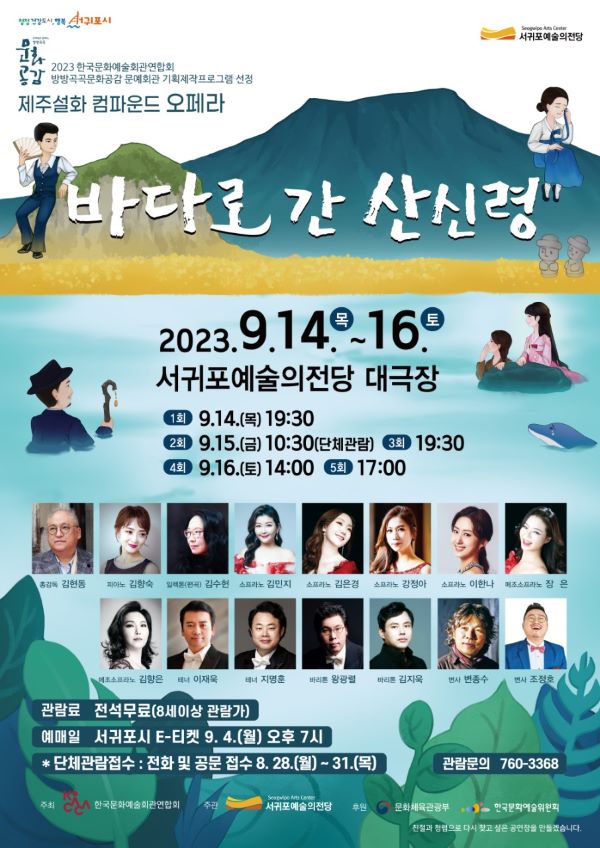 전석 무료며, 관람권은 이달 31일까지 단체관람 예약에 이어 9월 4일부터 서귀포시 E-티켓을 통해 예약할 수 있다.