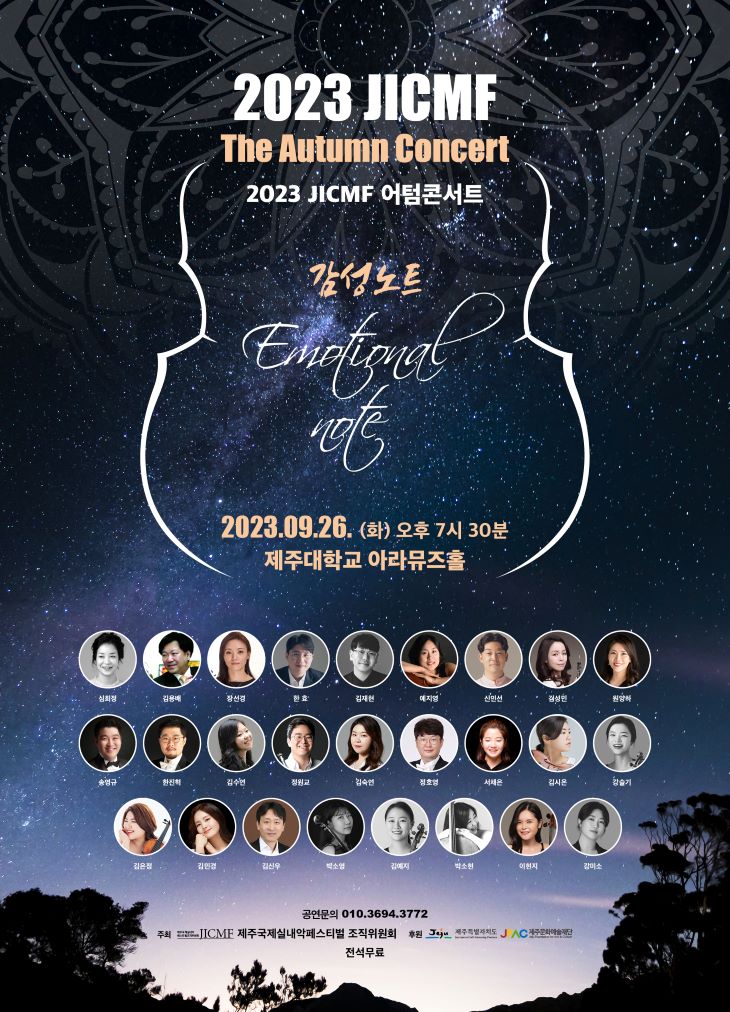 제주국제실내악페스티벌 조직위원회는 이달 26일 오후 7시30분 제주대학교 아라뮤즈홀에서 '2023 Autumn Concert'를 연다. 지난해에 이어 올해 두 번째로 선보이는 특별기획공연이다.