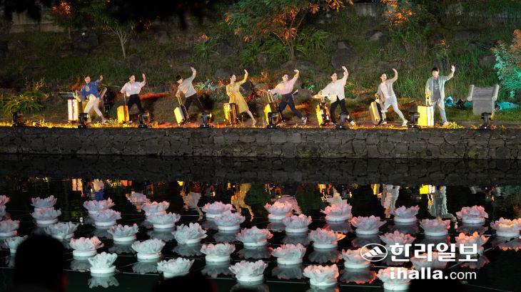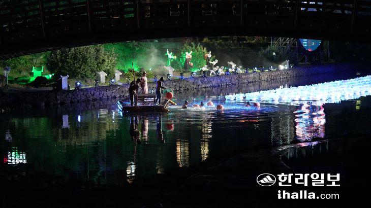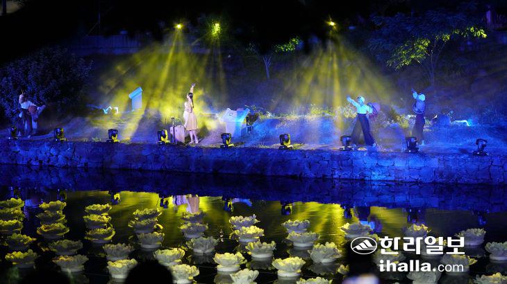 지난 8일 산지천 수상무대에서 지난 7일 우천으로 취소된 '제주의 할망' 주제공연이 첫선을 보였다. 오은지기자