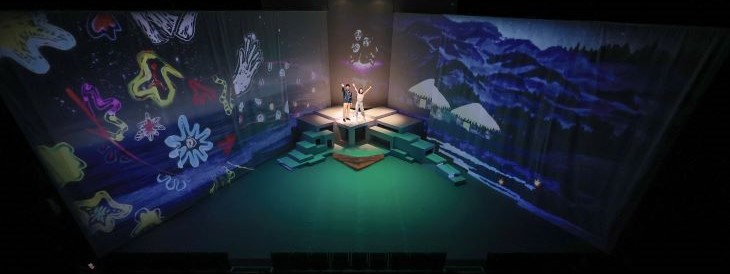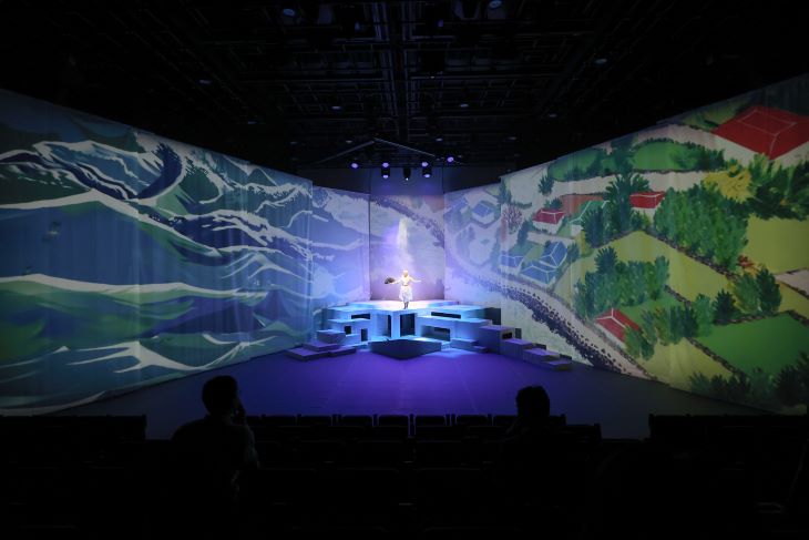 [한라일보] 대형 스크린 위에 미디어아트형 프로젝션매핑 기술을 활용한 5편의 원작 그림책 일러스트와 제주의 아름다운 풍경이 쉴 새 없이 펼쳐진다. 사다리꼴 구조의 4면 스크린(높이 6m, 길이 25m)은 무대가 되고 그 안에서 뮤지컬 배우 9명이 신나는 춤과 노래를 선사한다.