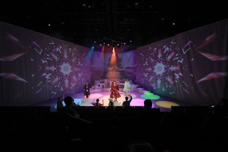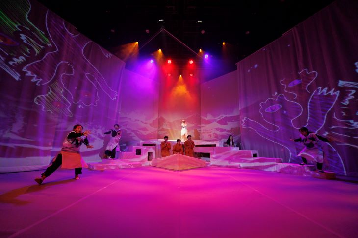 11일부터 제주영상·문화산업진흥원 내 BeIN;(비인 극장)에서 관객을 맞고 있는 어린이·청소년 가족뮤지컬 '그림책 속 제주 신화 이야기'의 공연 모습이다.