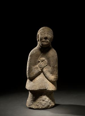 1685년쯤 제주 초기 동자석의 모습을 살필 수 있는 '두 손 모은 동자석'. 제주시 와흘리 산마감목관 김대진(1611~1685) 묘에서 출토됐다. 경주김씨파주목사공대진파문중 김동욱 씨가 국립제주박물관에 기증하며 최초로 공개되는 동자석이다. 국립제주박물관 제공