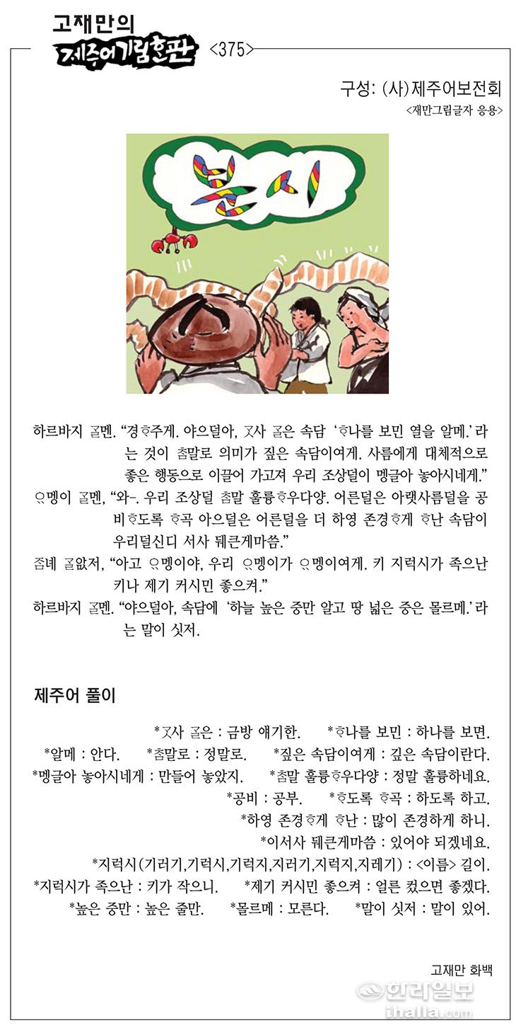 [고재만의 제주어기림혼판] 제주어 풀이(460)