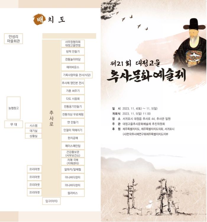 [한라일보] 올해 21회째를 맞는 대정고을 추사문화예술제가 오는 11월 4일과 5일 이틀간 서귀포시 대정읍 추사관 일원에서 펼쳐진다.