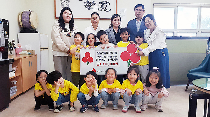 남원원광어린이집(원장 손영로) 원아와 학부모, 교직원 일동은 지난 2일 남원읍 관내 어려운 이웃을 돕는 데 사용해달라며 플리마켓 수익금으로 마련한 성금 147만6000원을 사회복지공동모금회에 기탁했다.