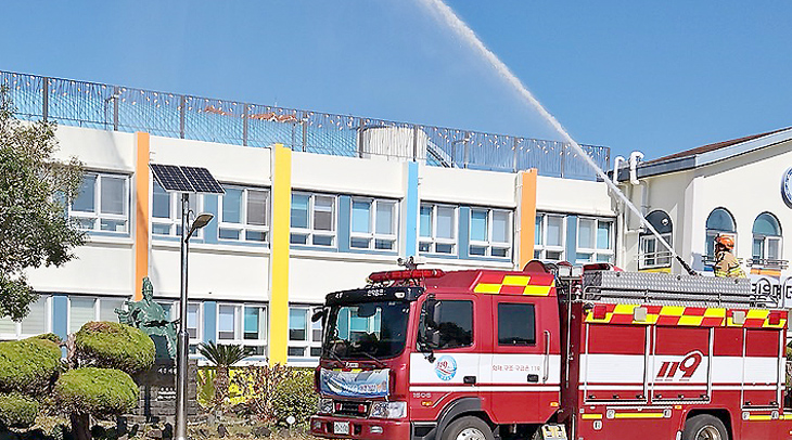 서부소방서 안덕 119센터는 지난 2일 서귀포시 안덕초등학교 지도교사 및 학생 100여 명을 대상으로 안덕초등학교에서 소화기 사용법, 화재진압 훈련 등 소방안전교육을 실시했다.