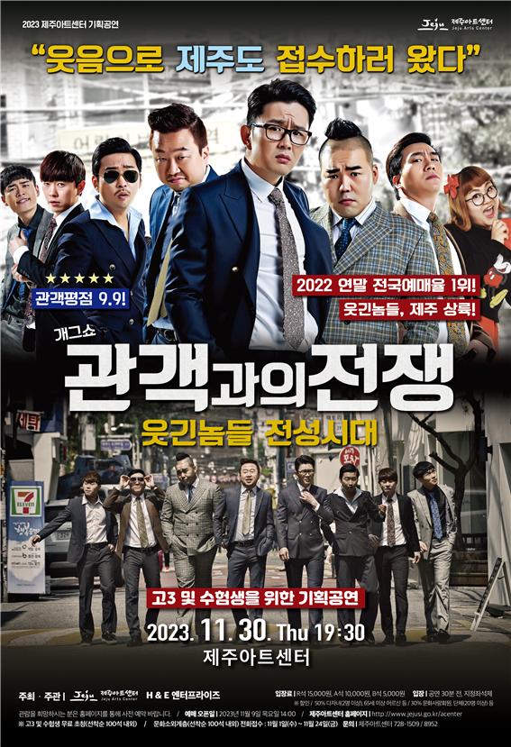 제주아트센터는 이달 30일 오후 7시30분 기획공연 버라이어티 개그쇼 '관객과의 전쟁-웃긴놈들 전성시대' 공연을 선보인다.