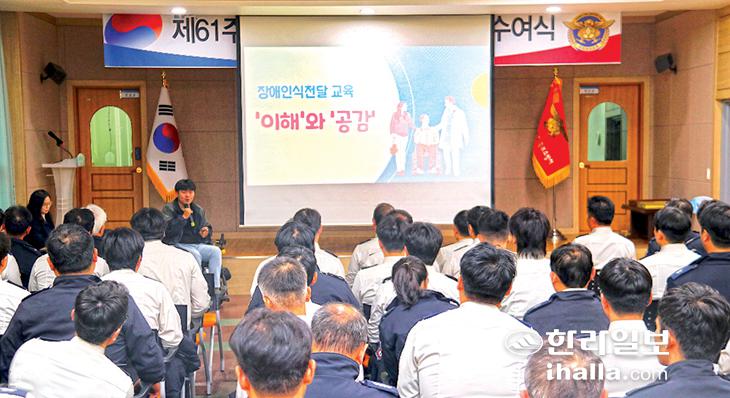 제주동부소방서(서장 김대홍)는 13일 본서 대회의실에서 전 직원을 대상으로 장애인식 개선교육을 실시했다. 이번 교육은 장애에 대한 사회적 인식의 변화와 편견 없는 이해의 필요성에 대해 직원들이 알기 쉽도록 사례 중심으로 진행됐다.