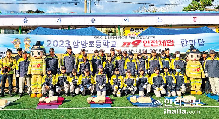화북119센터(센터장 권혁철), 화북의용소방대(대장 강재천, 조은숙)는 13일 삼양초등학교에서 6학년 학생을 대상으로 '119 안전체험 한마당'을 실시했다. 이번 체험활동은 심폐소생술, 소화기 사용법, 옥내 소화기 사용법 교육을 비롯해 소방차 화재 진압 시연, 의용소방대 심폐소생술 댄스 등이 곁들여진 유익한 시간으로 꾸며졌다.