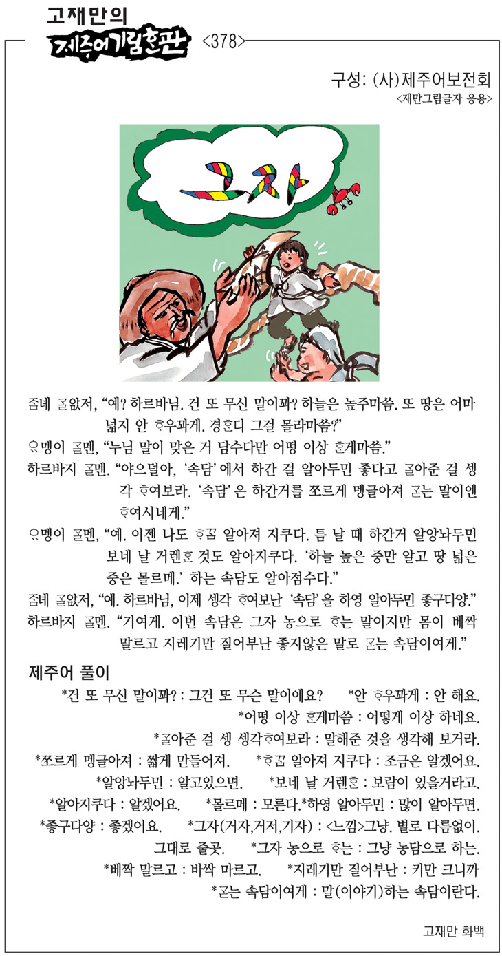 오늘의 제주어 풀이 "그자 농으로 호는 말이라..."