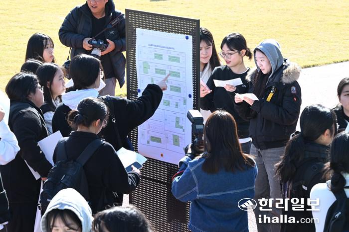 '2024 대학수학능력시험'을 하루 앞둔 15일 제주중앙여자고등학교 시험장에 예비소집에 참여한 수험생들이 시험 자리를 확인하고 있다. 이상국 기자