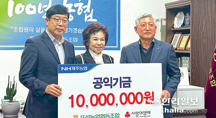 서귀포시에 소재한 표선농협(조합장 김용우)은 지난 20일 표선농협 조합장실에서 하나로마트 공익기금 전달식을 개최해 제주사회복지공동모금회에 1000만원을 기탁했다.