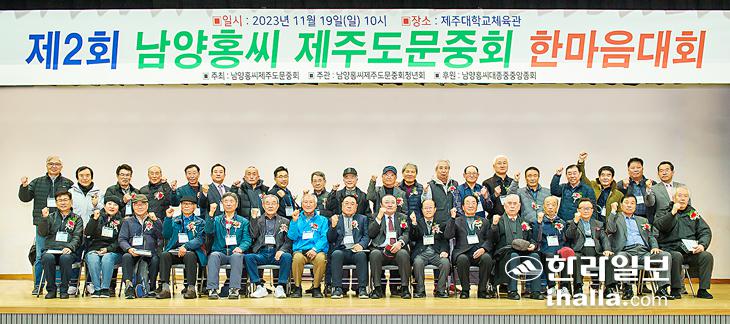 남양홍씨 제주도문중회(회장 홍은열)는 지난 19일 제주대학교 체육관에서 한마음대회를 열고, 어린이사생대회, 투호, 장작윷놀이, 몸빼바지 입고 달리기, 노래자랑 등의 프로그램을 진행하며 문중 단합의 시간을 가졌다.