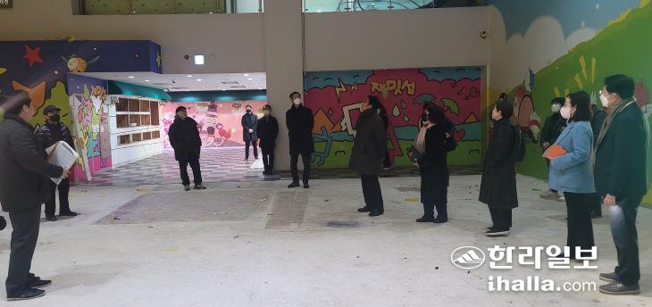 올해 초 옛 아카데미 극장(재밋섬) 건물에서 열린 '제주아트플랫폼(가칭) 조성 TF'현장 실사.