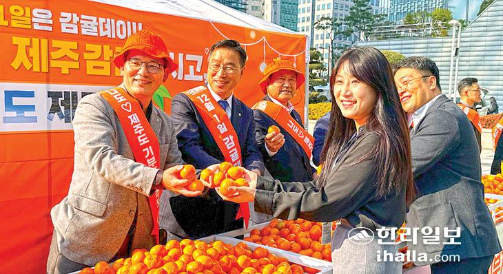 제주농협(본부장 윤재춘)과 제주특별자치도는 22일 농협중앙회 중앙본부 광장에서 제주농협 임직원 및 제주도청 관계자, 재경탐라협우회 회원 등 30여 명이 참석한 가운데 '12월 1일은 감귤데이, 나도♡제주도 고향사랑기부' 이벤트를 진행했다.