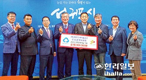 제주도내 42개 새마을금고와 새마을금고중앙회 제주지역본부로 구성된 MG제주도새마을금고 ESG운영위원회는 지난 20일 서귀포시청 시장 집무실에서 '새마을금고 창립 60주년 및 2023년 제3회 지역상생의 날'을 기념해 4000만원의 성금을 제주사회복지공동모금회(회장 강지언)를 통해 서귀포시자원봉사센터에 전달했다.