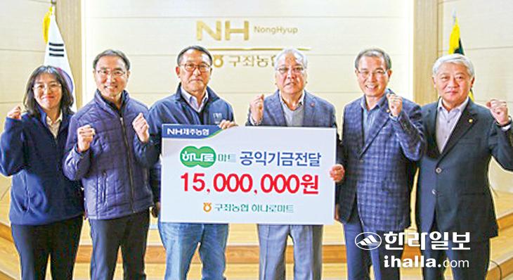 구좌농협(조합장 윤민) 하나로마트는 지난 21일 제주시 구좌농협 조합장실에서 하나로마트 공익기금 1500만원을 제주사회복지공동모금회(회장 강지언)에 기탁했다.