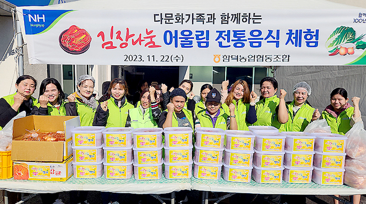 제주시 함덕농협(조합장 현승종)과 농가주부모임(회장 김기순)은 지난 22일 함덕농협 여성복지 센터에서 회원 50여 명이 참여한 가운데 지역 내 다문화가정과 함께 직접 김치를 담그고 빙떡, 몸국 등 한국음식 만들었다.