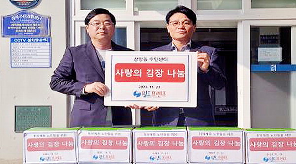 제주시 삼양동주민센터(동장 고상익)는 지난 23일 동주민센터에서 월드프렌즈(대표 김성용)와 함께 지역 내 취약노인 가구 지원을 위한 김치(20박스) 전달식을 가졌다.