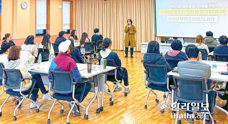 제주시체육회(회장 이병철)는 29일 사라봉다목적체육관 2층 다목적실에서 생활체육지도자를 대상으로 체육의 공정성 확보와 생활체육지도자 인권보호 교육을 실시했다. 이날 교육에선 스포츠 윤리 교육의 목적 및 방법, 스포츠 인권침해 예방 방법에 관한 내용 등이 공유됐다.