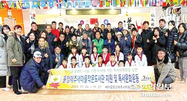 새마을문고중앙회제주시지부(회장 오희부)는 지난 25일 중국 길림성 용정시에서 새마을문고제주특별자치도(회장 유철수) 이사 및 지도자, 관내 주민 등 60여 명이 참석한 가운데 지구촌공동체운동의 일환으로 용정제주새마을작은도서관에 도서 500여 권을 전달했다.