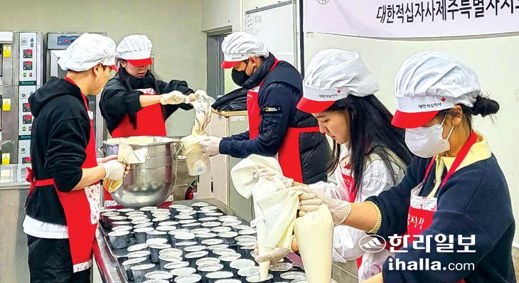 제주에너지공사(사장 김호민) 사내 직원들로 이뤄진'온새미들 봉사단'은 지난 24일 대한적십자사제주특별자치도지사(회장 정태근)와 '사랑의 제빵봉사'를 전개했다. 이날 만든 빵은 도내 사회복지시설인 아라종합사회복지관의 아동 및 어르신들에게 전달했다.