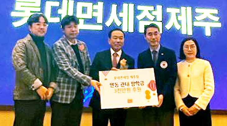 롯데면세점 제주점(점장 이성철)은 지난 1일 제주시 메종글래드호텔 연회장에서 열린 연동 자생단체 합동 워크숍에서 소외된 이웃들에게 써달라며 대한적십자사 제주지사를 통해 제주시 연동주민센터에 장학금 3000만원을 기탁했다.