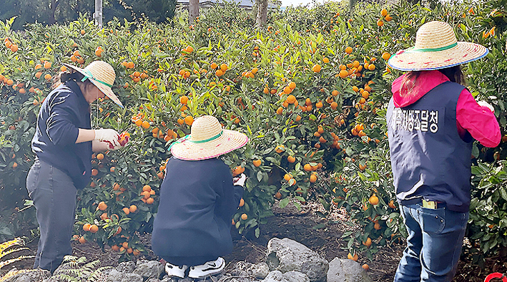 제주지방조달청(청장 육창용)은 8일 서귀포시 상예동에 소재한 감귤 농장을 찾아 감귤 수확·운반 등 농촌 일손 돕기 봉사활동을 실시했다. 이번 봉사활동은 본격적인 감귤 수확철을 맞아 제주지역 농촌인구의 고령화 등으로 일손이 부족한 농가의 어려움을 함께하기 위해 마련됐다.