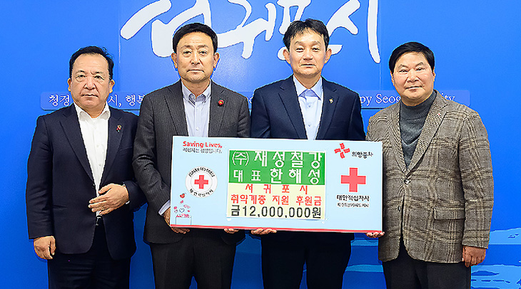 (주)재성철강(대표이사 한해성)은 지난 8일 서귀포시청 접견실에서 대한적십자사제주특별자치도지사(회장 정태근)에 서귀포시 취약계층 지원 후원금 1200만원을 기탁했다.