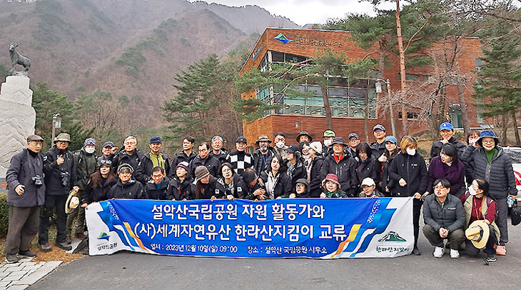 (사)세계자연유산 한라산지킴이(이사장 이범종)는 지난 8~10일 설악산 국립공원 일원에서 설악산 국립공원 자원 활동가와 함께 국립공원 식생 관리 및 환경 등에 관해 공유하는 교류 행사를 가졌다.