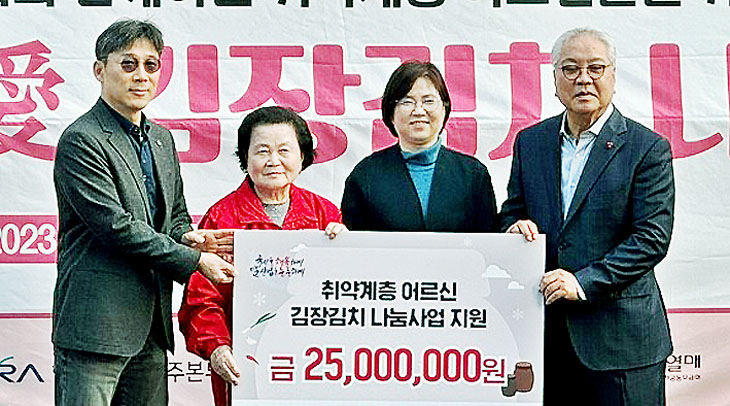 이날 준비된 김치는 노인일자리 참여자와 노노케어 수혜대상자 등 500가정을 선정해 전달됐다.